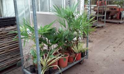 Allereerst maar eens naar Gardenpalms om wat platen uit te zoeken...werden voornamelijk palmen, Yucca's en banenen en siergrassen, uiteindelijk 2 karren vol...tja dat paste niet in de auto dus maar laten bezorgen...sorry Herbert :oops: