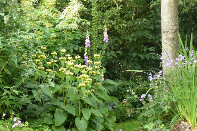 Cephalaria gigantea zag ik vorig jaar voor het eerst in de botanische tuin in Utrecht. Nu bloeit deze voor het eerst bij mij: Zo'n 2,5 meter hoog!