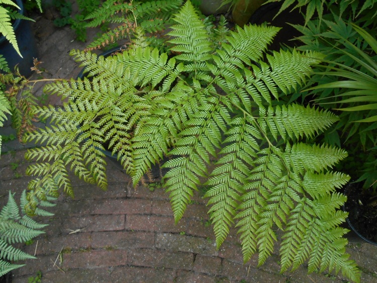 Dryopteris affinis polydactyla mapplebeck lijkt me correct Bart. Deze variant is kennelijk stabiel, want ik tref nu en dan nazaten aan bij mijn kuipplanten. In de tuin zie ik zelden uitgezaaide varens, maar bij kuipplanten gedraagt het zich als elk willekeurig onkruid. Zo heeft bijvoorbeeld Dryopteris lepidopoda zich bij een Cordyline ingenesteld. Vanwege mijn zwak voor varens laat ik ze vaak met rust in tegenstelling tot andere ongevraagde kostgangers.