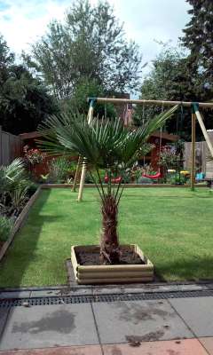 Aangezien de rest van mijn tuin uit kleinere palmbomen bestaat zijn dit direct de aandachtstrekkers.