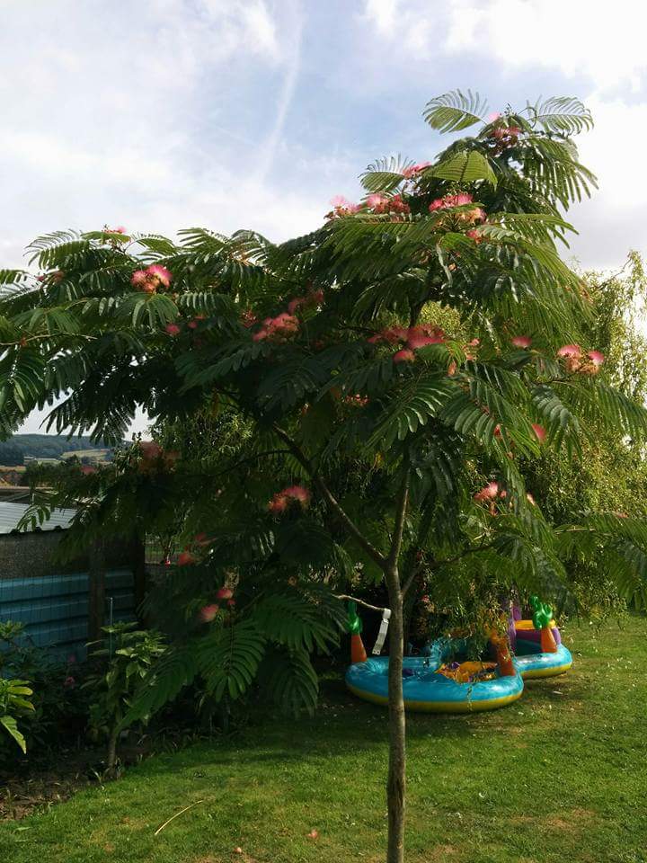 Pieter73 schreef:Marjanne, de soort is een Albizia julibrissin. Maar je wilt waarschijnlijk weten welk ras het is. Ik denk dat het geen enkel ras meer is omdat je schrijft dat het een zaailing is. En zaailingen hebben nooit hetzelfde genetisch materiaal als de moederplant en zijn dus niet raszuiver. Alleen ongeslachtelijke vermeerdering (stekken enz.) levert raszuivere planten. Als ik me niet vergis is het trouwens officieel verboden om Albizia julibrissin "boubri" (="umbrella") zo te vermeerderen omdat er patent op zit.