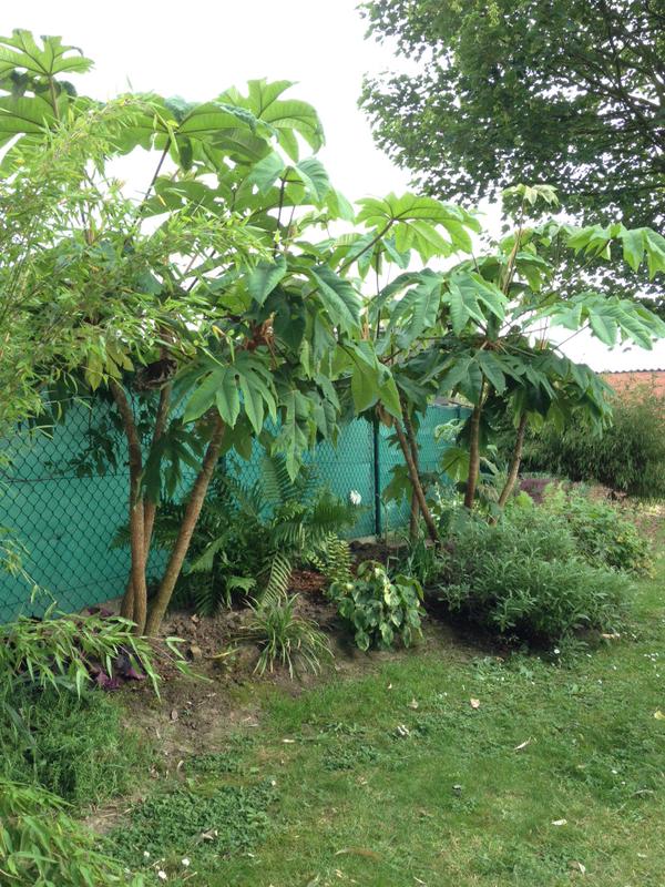 Allemachtig die Tetrapanaxen...wat een blad...hier komen de blaadjes net piepen...wat een verschil