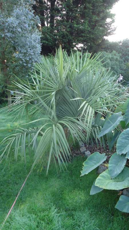 Dit is mijn 3de exemplaar B. capitata dat ik in volle grond heb gezet sinds 2001. Butia eriospatha heb ik 2 x geprobeerd. In die tijd beschermde ik ze niet of enkel met een afdak maar toen kwam plots die reeks strenge winters en was het einde verhaal voor al mijn Butia's natuurlijk. Nu bescherm ik de plant met bijwarming en heb ik geen problemen meer gehad.