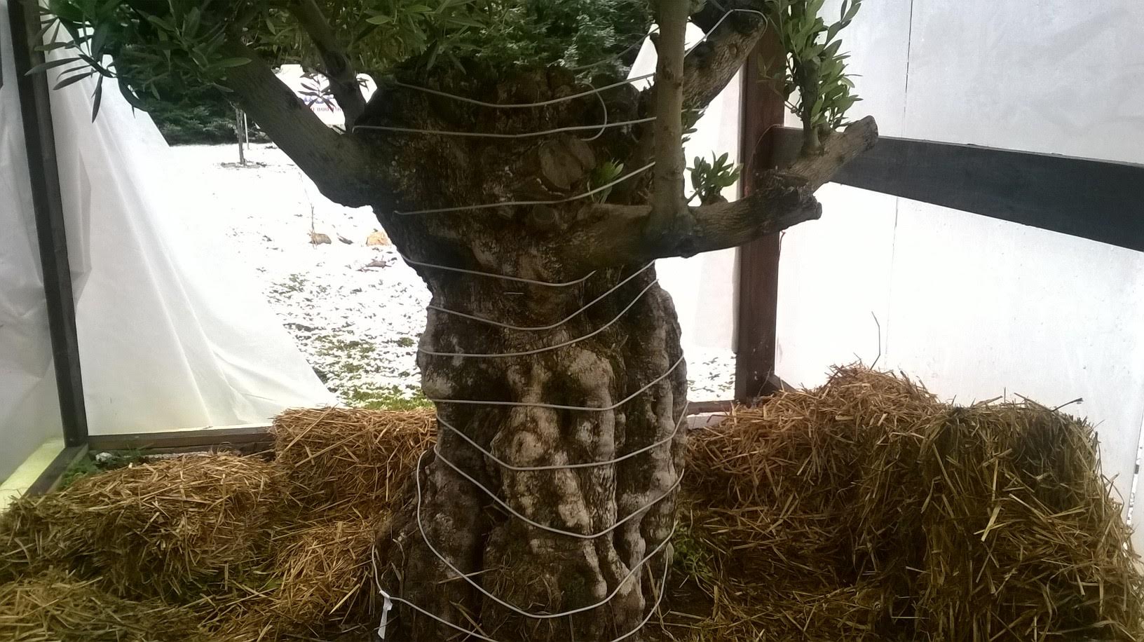 En bij zo inpakken heb je het risico op vorstscheuren in de stam en dan is het afgelopen met jou prachtige olijf. Geloof me je zal wel zien.