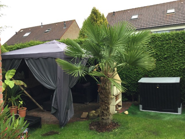 Trachycarpus Fortunei vorig jaar in de volle grond gezet en groeit opvallend hard met veel blad al dit jaar en dan te bedenken dat deze (bij de Praxis gekocht) volledig in de klei stond. Zoveel mogelijk geprobeerd om klei van de wortels te krijgen en heb de palm maar liefst 3 dagen onafgebroken in een emmer met water en een flinke dosis Palmbooster gezet. Misschien heeft dit gewerkt en is dit de gouden regel?