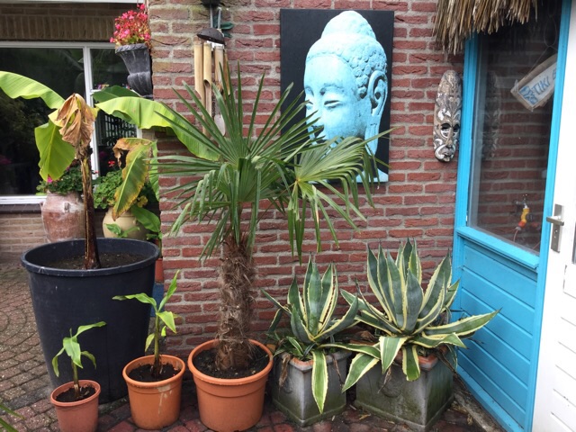 Trachycarpus Fortunei vorig jaar in de volle grond gezet en groeit opvallend hard met veel blad al dit jaar en dan te bedenken dat deze (bij de Praxis gekocht) volledig in de klei stond. Zoveel mogelijk geprobeerd om klei van de wortels te krijgen en heb de palm maar liefst 3 dagen onafgebroken in een emmer met water en een flinke dosis Palmbooster gezet. Misschien heeft dit gewerkt en is dit de gouden regel?