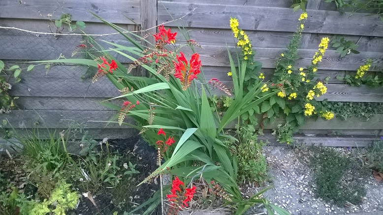 Crocosmia staat net in bloei, evenals andere planten waar ik nu even geen foto's van bij de hand heb.
