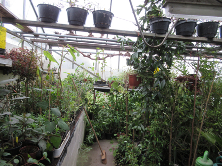 In de serre, een aantal jonge planten en iet meer koude gevoelige, deze wordt vorstvrij gehouden.