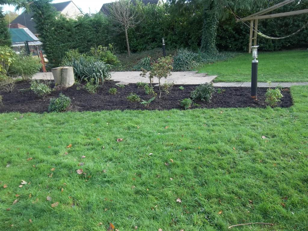 Ik ben momenteel bezig borders uit te steken waar in het voorjaar de winterharde exotische bomen en planten worden aangeplant. De meer gevoelige komen dan in pot op verharde perkjes in het gazon. Ruimte voor de speeltuin van de kleinkinderen moet ik wel behouden.