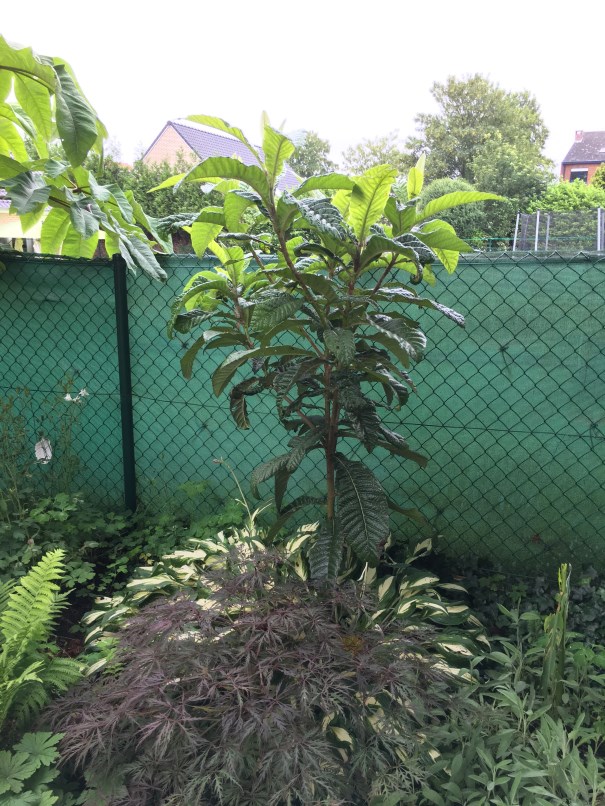 Vanavond eens op die Eriobotrya japonica gelet en lijkt 1m zeker breder te zijn nu en ook wel ergens tussen de 50-100cm hoger.