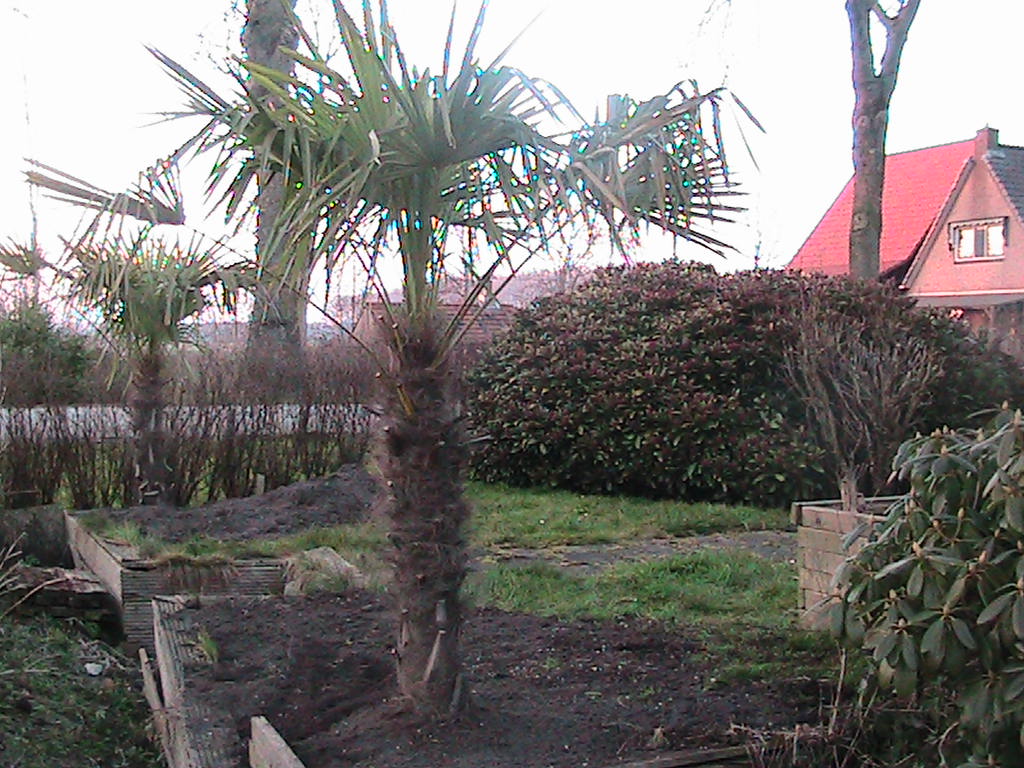 Mijn Palmen trekken aardig weer bij van de ijzel Eerste foto is van Wagnerianus bijft nu verder de hele winter onder het afdak staan de bladeren blijven mooi palm nummer 1.Tweede en derde foto van de Fortunei's bladeren zijn aardig weer bij getrokken had ik niet verwacht de Palmen worden met winterse buien beschermd en strenge vorst deze winter mocht het er van komen.
