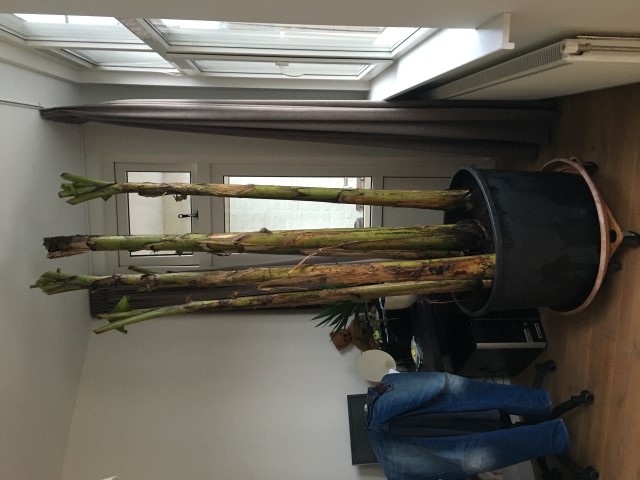 Circa 6 jaar terug heb ik een musa basjoo gekregen van een goede vriend. Deze was 2 jaar terug gigantisch groot (circa 3 meter), echter is deze helaas twee jaar terug overleden. Hij was in gepakt maar -20 vond hij nogsteeds niet leuk.