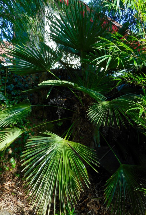 Trachycarpus kan prima groeien in de schaduw, hebben ze totaal geen problemen mee. Mooie palm dit!