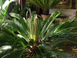 Mijn Cycas maakt momenteel een nieuwe bladerkroon met vele zijscheuten, zie bijgaande foto's.
