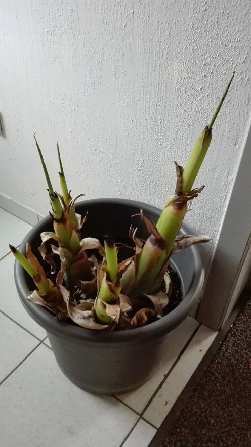 Ik vind de Musella lasiocarpa het mooist als je enkel de moederstam houd en de pups er ieder jaar afhaalt zodat je een solitaire stam hebt. Zo komt de plant het mooist tot zijn recht vind ik maar dat is natuurlijk persoonlijk. Als je de pups er steeds afhaalt merk je ook dat die moederstam dan veel voller en groter word dan wanneer je dit niet doet. Bij mij heeft het trouwens 7 jaar geduurd voor ik een bloem kreeg en de moederplant ter ziele ging. Je merkt dit meteen dat hij gaat bloeien en dan heb ik één van de pups apart opgepot zodat ik nu weer van voor af aan gestart ben.