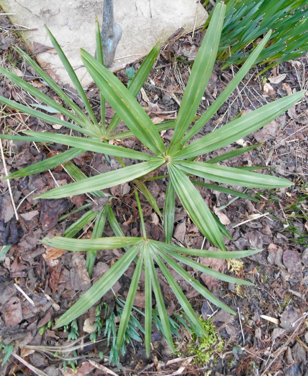 In de tuin staat een tweede takil afkomstig uit het gebied 'Kalamuni'. Deze heeft stevig blad, maar groeit daarentegen erg langzaam. Trachycarpus geminisectus is hiermee vergelijkbaar met stevig blad en traag groeiend. De bladsegmenten zijn zodanig stijf dat wanneer ze knakken, dit gebeurt bij de aanhechting.