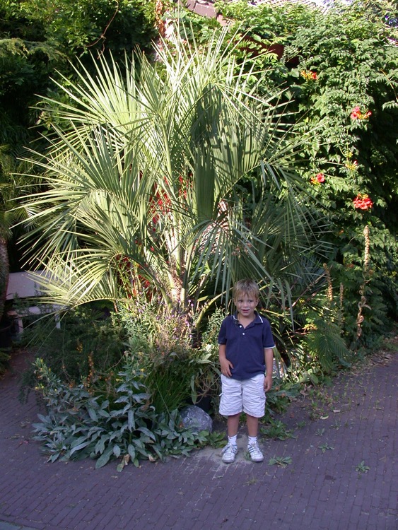 Heb gelijk ook maar de eerste binnen-overwinteraars naar buiten gekwakt (Chamaedorea radicalis, C. microspadix, een paar kleinere Butia en Chamaeropsen en ook een Nikau) - wel nog in de schaduw, zodat ze alvast kunnen wennen.