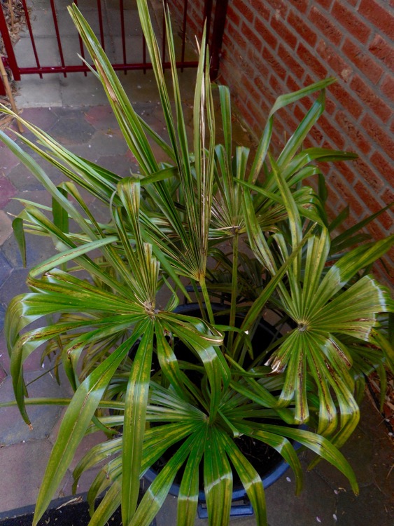 Ik heb Trachycarpus takil 'Kumaon' uitgespit omdat het een lelijk geval vind. Nu en dan is een 'hard' ingrijpen onontkoombaar :roll: De snelgroeiende palm bood stevig weerstand met een goed ontwikkeld wortelstelsel. Het aanhoudend 'ziekelijke' beeld heeft daarom waarschijnlijk geen 'ondergrondse' oorzaak?