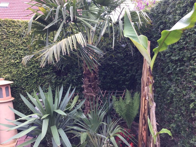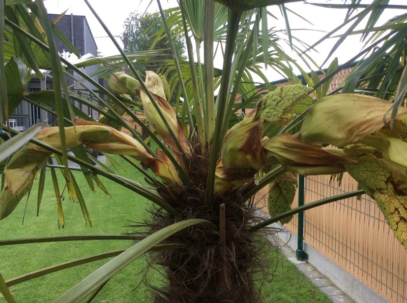 1 keer per maand (start meestal in Januari t/m Sept) vloeibare voedsel voor mediterrane planten (rode kleur flesjes). Palm is niet meer te houden en oersterk. Ding groeit zeker nu 30 Cm per jaar en de speren blijven eruit komen. Op warme zomeravonden lekker natnevelen.