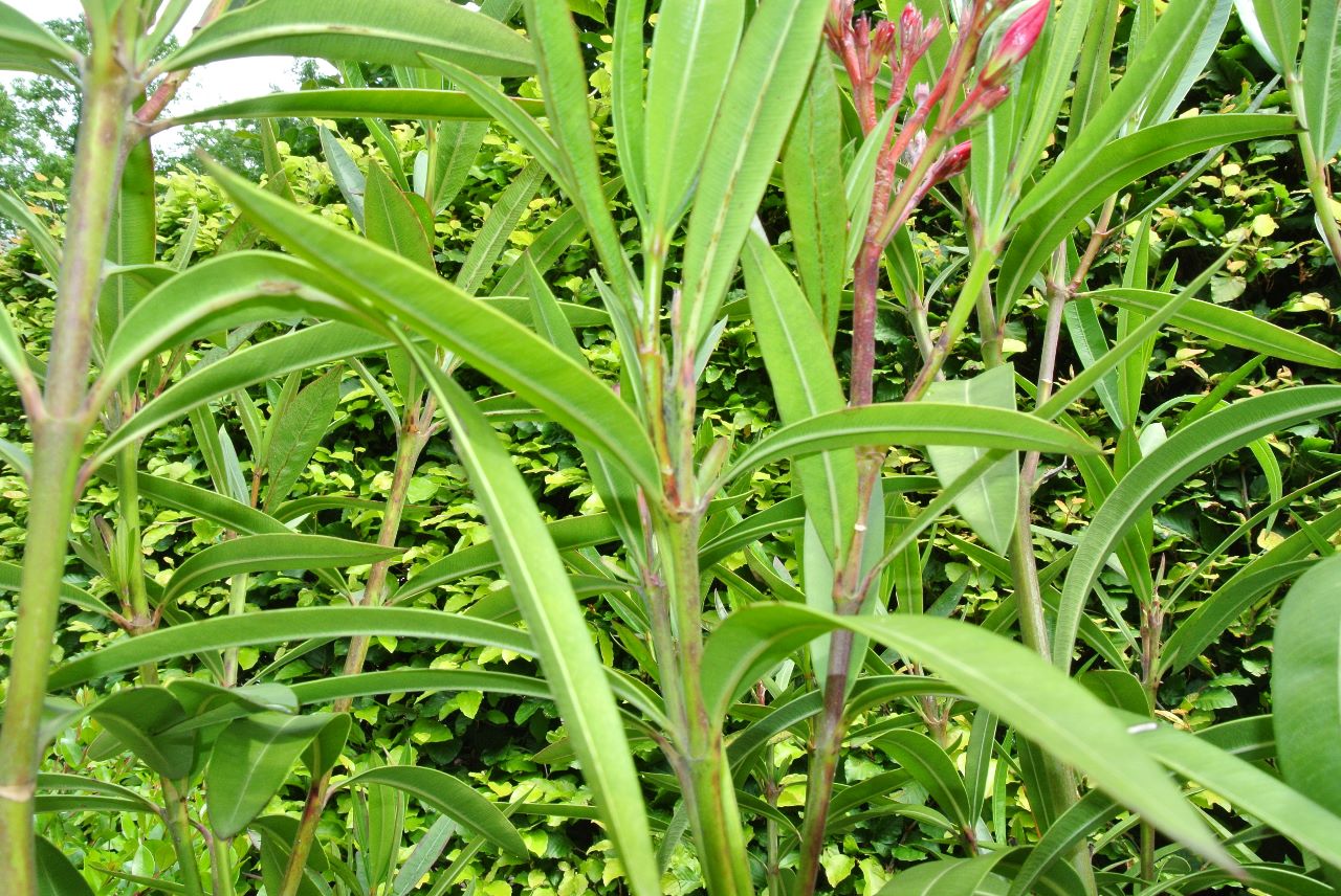 Toch wel best raar dat ze overal juist zeggen dat een oleander veel water en voiding nodig heeft. Kom net terug uit het kurkdroge Sardinie en daar staan ze ook overal op zeer droge plaatsen vol in bloei ... Mijn oleanders zijn inmiddels weer flink gergroeid maar onderaan worden de bladeren vrij snel geel met zwarte vlekken en vallen dan af... Boven waar het zonlicht goed de plant raakt zijn de bladeren wel mooi stevig en groen... Het blijft met ons natte en zonloze klimaat toch een vrij moeilijke plant ...