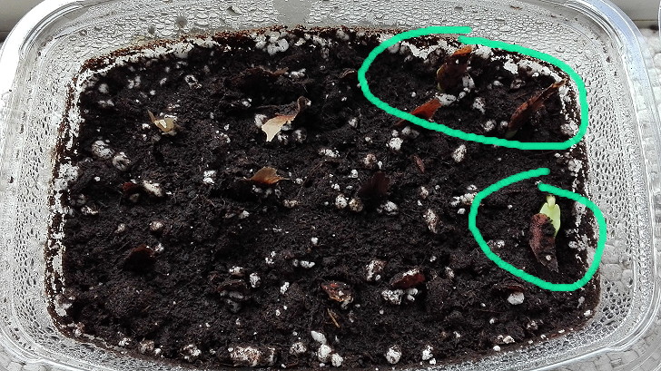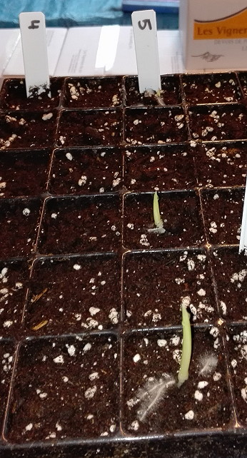 Die is totaal mislukt, heb gisteren alles weggekapt en er was geen enkel zaadje te bekennen. Waarschijnlijk was de temperatuur buiten in volle zon in de bak met glas veel te hoog, rond de 50°C en dat met natte grond heeft ze waarschijnlijk allemaal gekookt.