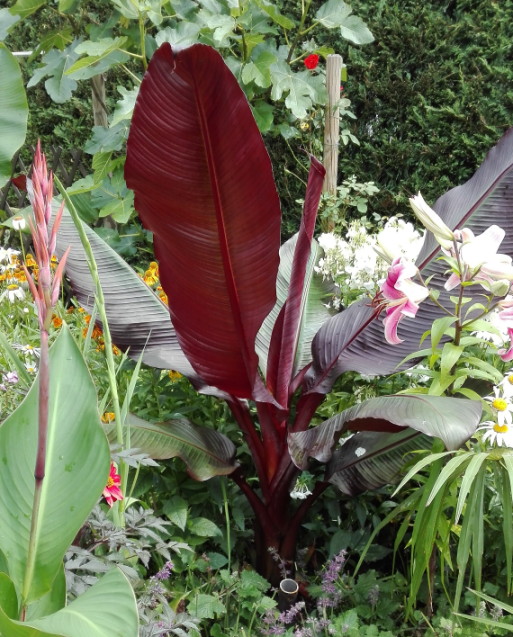 Deze "kleine beestjes" komen van Haps. Na eerst verbrand te zijn, aangevreten door luizen en een flinke hagelbui lijken 2 van de drie (in potten) het goed te hebben doorstaan. De derde (links naast de achterste pot) bleef wat kleiner en de bladluizen leken ook een voorkeur voor deze te hebben. Deze staat nu in de volle grond.