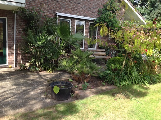 Hoewel de exotische planten hobby hier al 6 jaar geleden is begonnen en ik hier ook al jaren actief ben op het forum, heb ik nooit een uitgebreide fotocollectie van de tuin met jullie gedeeld. Tijdens een vakantie in Zuid-Europa is de interesse voor exotische planten bij mij en mijn broer begonnen. Na terugkomst waren al snel het eerste palmpje en de eerste banaan in huis. Echter, omdat ik 14 jaar oud was en mijn broer 18 jaar, hadden wij geen eigen tuin tot onze beschikking. Gelukkig mochten we de tuin van onze ouders eens flink aanpakken. Sindsdien is de liefde voor de exotische planten alleen maar gegroeid. Ieder jaar werd het aantal exotische planten hier drastisch uitgebreid wat ondertussen resulteert in een exotisch paradijsje. We hebben steeds weer een ander stuk van de omvangrijke tuin onder handen genomen. Dit betekend dat op verschillende plekken in de tuin exotische stukjes zijn aangelegd. De bedoeling is om de komende jaren uit te blijven breiden, al zullen op den duur de planten verhuisd moeten worden naar een eventuele eigen tuin en huis. Ik zal jullie in de toekomst op de hoogte proberen te houden van de ontwikkeling hier in de tuin. Maar genoeg gepraat voor nu, het is tijd om eens wat foto's te laten zien. De eerste foto's zijn van de aanleg een aantal jaren geleden. De foto's van de planten zijn van deze zomer. Niet van alle soorten is een aparte foto gemaakt, daar is geen beginnen meer aan. Wel heb ik geprobeerd om de meest bijzondere soort een aparte foto te geven. In het onderschrift staat een beetje toelichting.