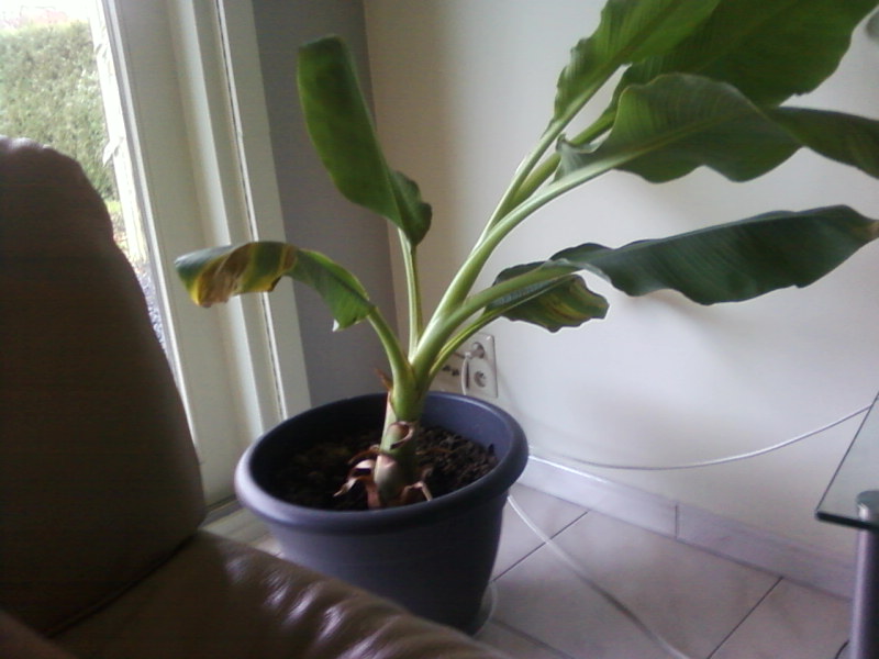 Musa's die ik binnen heb staan voor het raam probeer ik bij elk nieuw blad te draaien om hem zo recht te laten groeien.