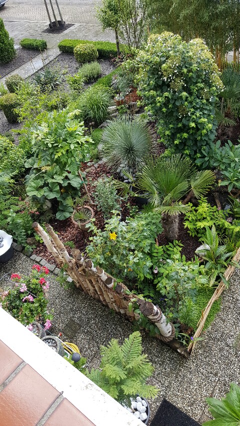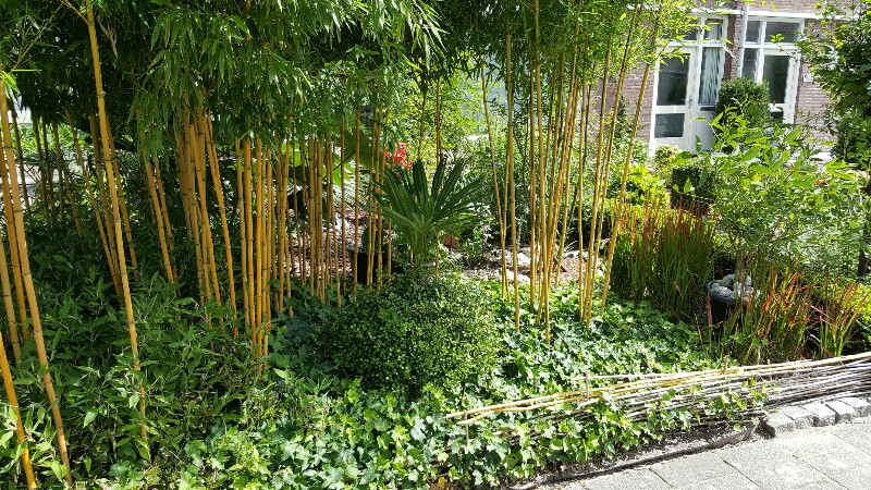 Top :thumb_up: Het staat lekker vol met een mooi jungle effect door de bamboe en de planten ogen tiptop. De kuippalm met de grijswitte keien kan ik niet thuisbrengen? En op een van de kleine afbeeldingen meende ik het silhouet van een stekelige succulent te ontwaren (foto 8 ?).