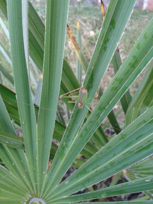 Re: sprinkhanen op palmboom