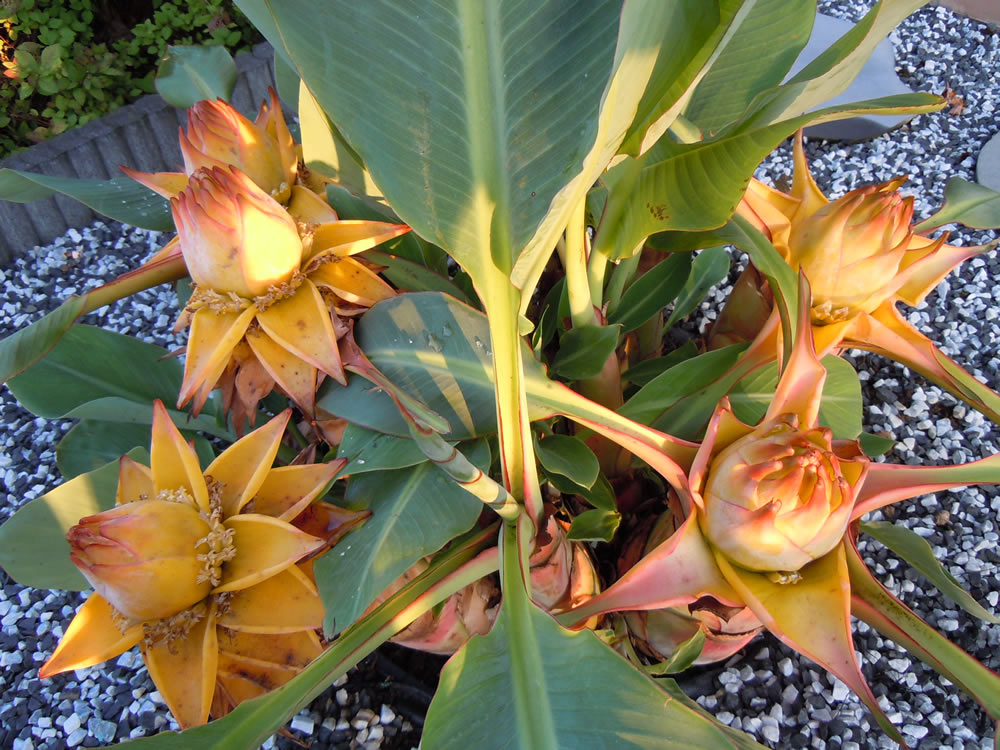 Een musella die je koopt, al dan niet met bloem op een hoge stam, komt uit de kas of een warm land. In onze lage landen blijven ze laag.