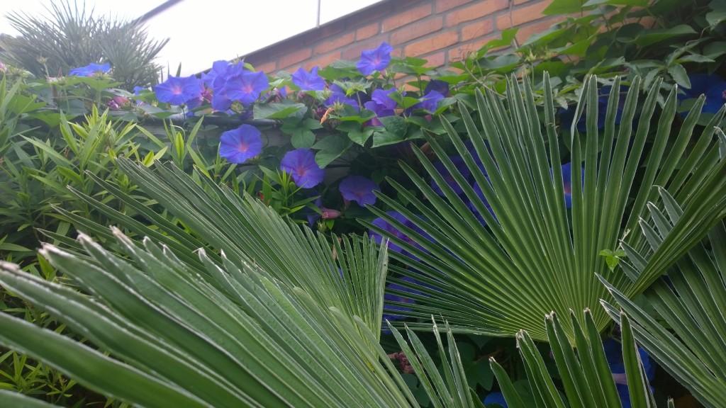 Wat een dankbare plant is dit toch, mits het weer een beetje meezit. En dat zit het momenteel! Elke ochtend circa honderd nieuwe bloemen, schitterend! De blauwe kleur is echt onvertroffen blauw. De plant groeit met scheuten van vele meters lang en overwoekert nu snel de hele border. Groeit over het garagedak enz. Blijft apart dat deze soort niet tot vruchtvorming komt.
