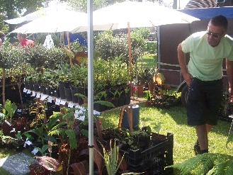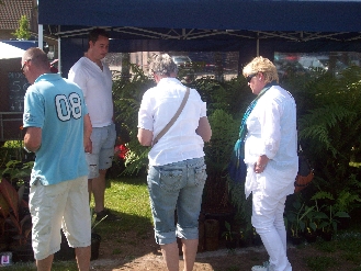 Terug thuis van een uitstapje naar Haps. Weeral een geslaagde editie als je het mij mag vragen, tropisch weer, heel wat gekende gezichten gezien en ook ongekende waar we een naam op hebben geplakt en wederom een aantal planten in de koffer kunnen steken en terug de grens over geraakt :lol: . De heen reis was niet alles wat het moest zijn want in Eindhoven was de autoweg volledig heraangelegd en was rijden met GPS niet evident, er werd zelf op een gegeven moment er op aangeduid om er niet op te navigeren, dus op de ouderwetse manier de copiloot met de kaart (a) eenmaal terug op het goede "pad" begon mijn GPS kuren te krijgen en stuurde mij naar Haps via een kleine omweg naar Nijmegen, wederom hebben we dit kunnen oplossen met de copiloot en de kaart. Om iets na 11u, 11u03 om precies te zijn stonden we aan de ingang van de beurs. Met als gevolg een aantal planten rijker waaronder een Cyathea Brownii van bij Ro, na het bezoek bij Ponga was het beginnen kriebelen en onze vriend Ro heeft de laatste zet gegeven om er dan één aan te kopen (a), ook nog 2 cycas en voor de copiloot nog een mooi en winterhard bloemplantje nl. een Bougainvillea ‘Dania’. Maar genoeg geleuterd hier zijn enkele sfeerbeelden