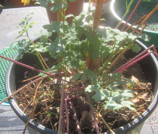 Ik heb hier een plant staan waarvan de naam op het kaartje helaas niet meer leesbaar is. Het is een winterharde plant met paarse stengels en die in de winter afsterft. Een grote stengel die wel 2-3 meter hoog kan worden als bloem. Alvast bedankt .