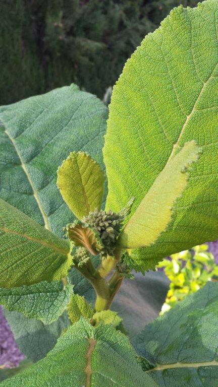 Kan iemand mij zeggen wat dit is? Vorig jaar als stekje gekregen en nu ruim 1 meter hoog met groot blad. Geeft in het voorjaar blauwe bloemen.