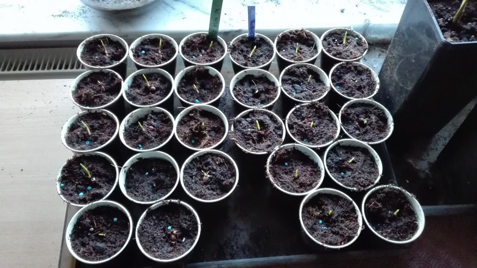 OK ik heb mijn planten ingedeeld in onkiemt (wil zeggen dat ze wortel hebben maar nog niks zichtbaar is boven de grond) en ontsproten (net zichtbaar boven de grond en nog geen volledig blad)