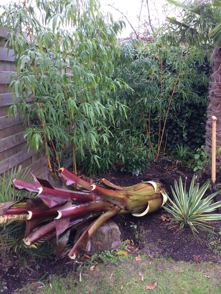 Mijn ensete beest heeft het zwaar. Heel de winter hebben de rouwvliegjes er lekker van gesnoept!