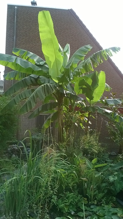 Hierbij de foto's van mijn Musa itinerans forma india en ter vergelijking ook sikkimensis en basjoo. Eerst 3 foto's van 22 september 2016 toen er nog geen nachtvorst was geweest.