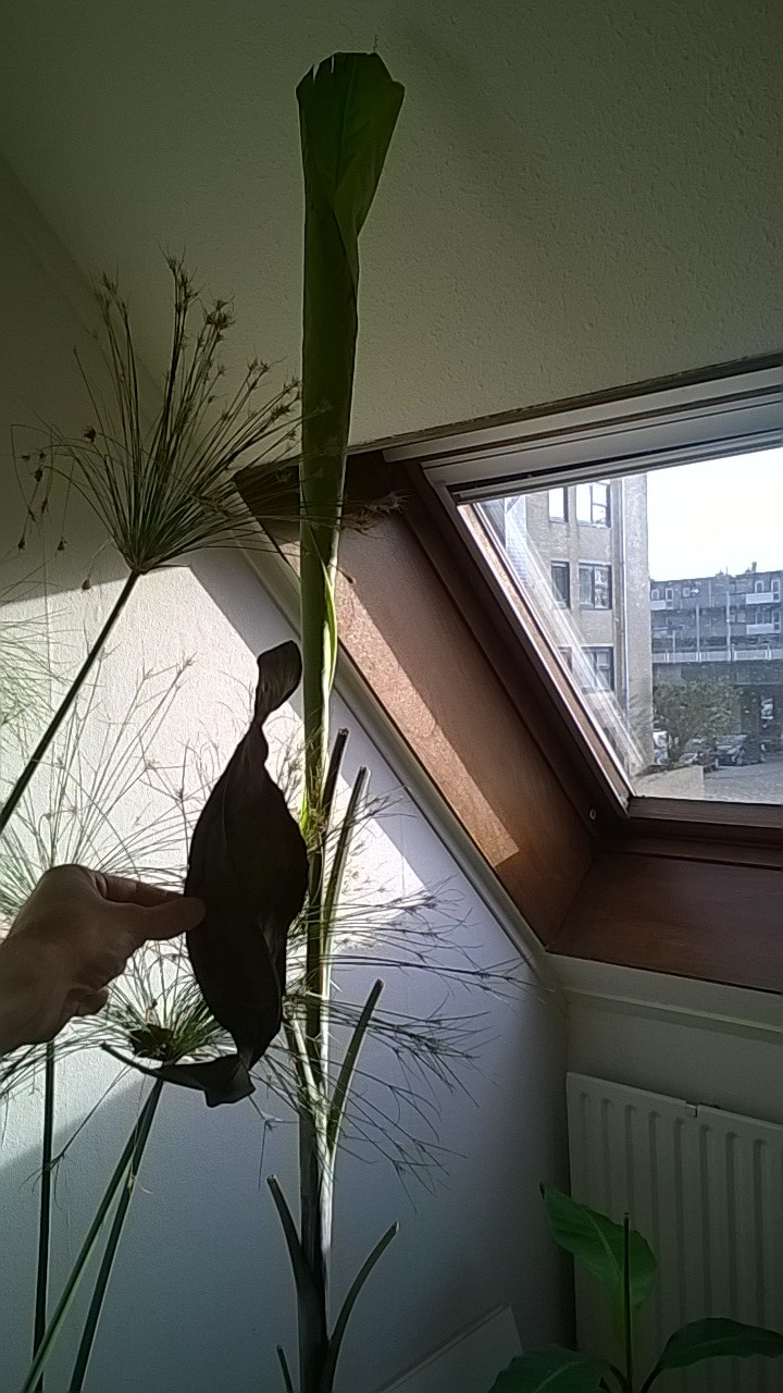 Hoi Remco, bedankt voor je reactie. Hierbij wat extra foto's. Op palmvrienden-facebook werd aan Musa balbisiana 'Thai Black' gedacht. Ik vind ze er allemaal wel wat op lijken. En dan ziet hij er binnen weer anders uit dan buiten. En momenteel ziet hij er vrij beroerd uit, het wordt tijd dat hij weer naar buiten kan.
