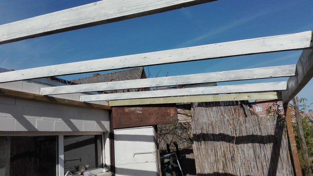 Niet veel kunnen doen maar de belangrijkste balk ligt er nu wel met grondverf