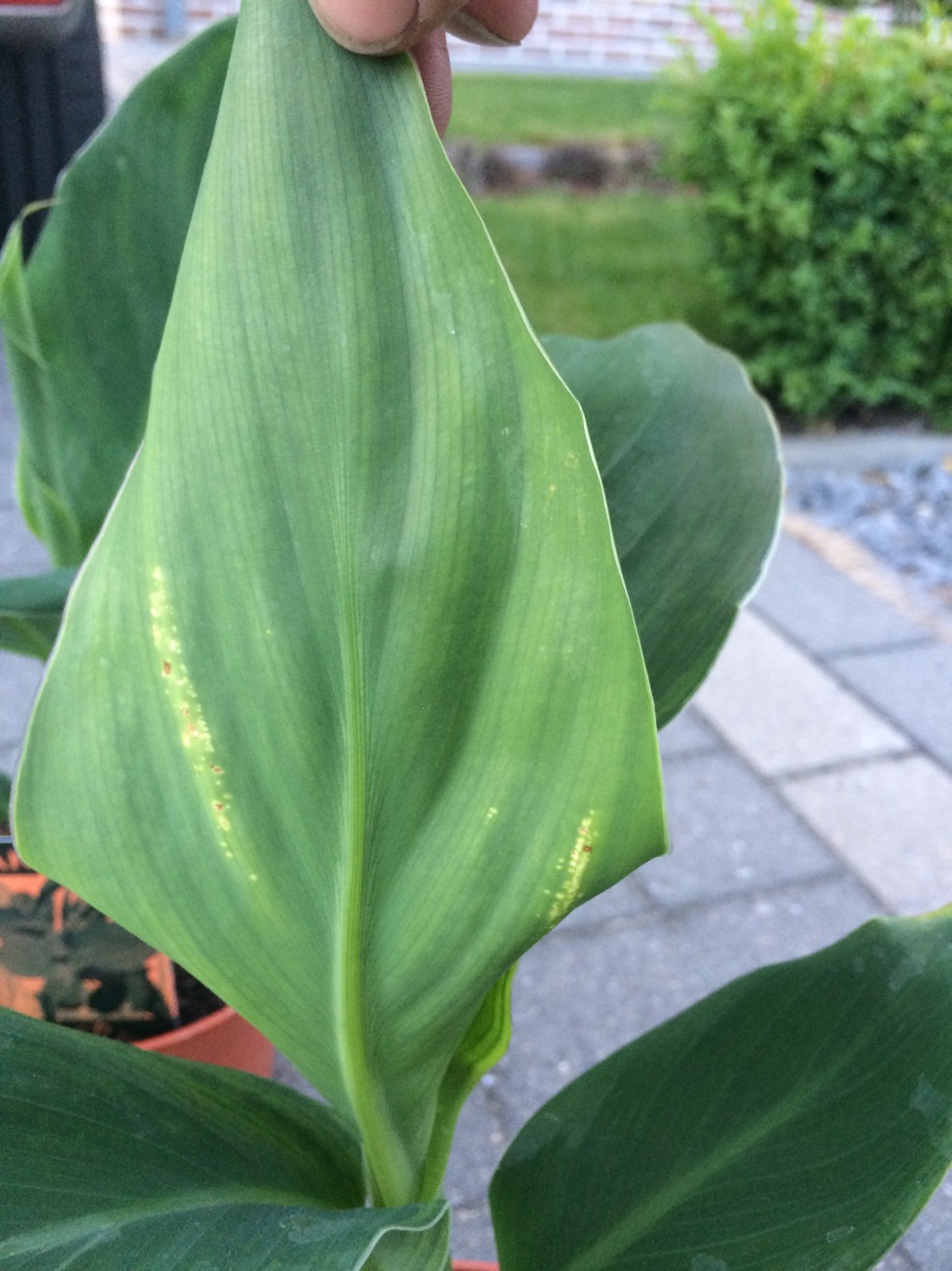 Vandaag 2 canna's gekocht maar bij thuis komst merk ik plots op dat er witte puntjes op het blad zitten. Is dit iets wat ik moet behandelen of is dat normaal?
