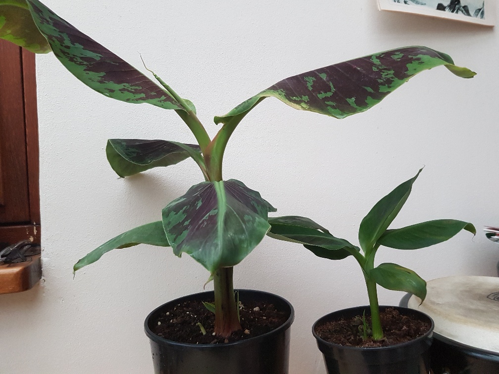 De 3 Basjoo stekjes van een paar blaadjes gaan deze kleine dwarf inmiddels ook al voorbij.