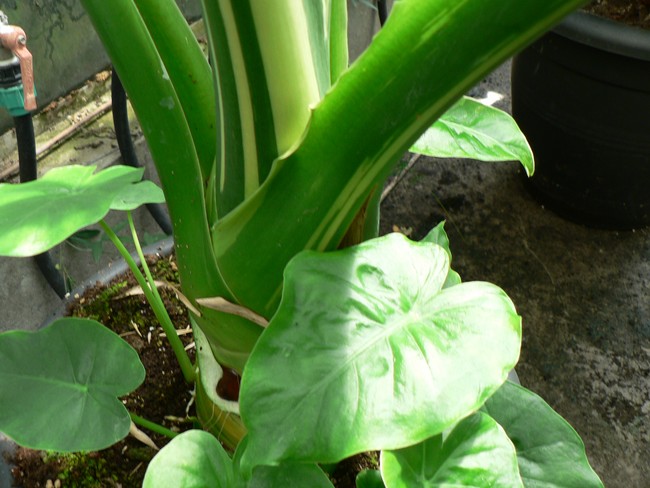 De oude plant maakt alweer wat pups en die zijn eerst groen en kleuren later naar bont .