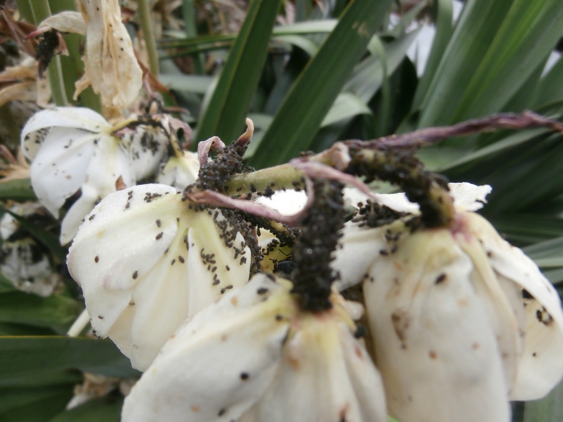 Op mijn Yucca, colocasia, chamaerops, brahea, phormium, oleander, brugmansia, ... noem maar op.