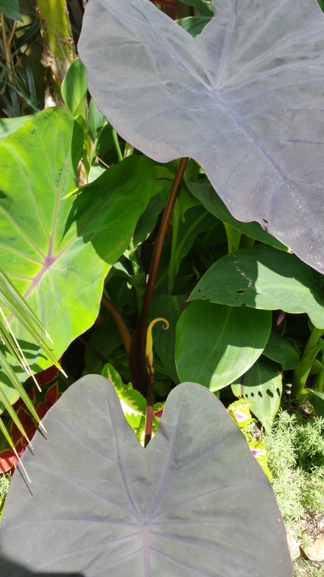 ps wat is de naam van de plant met dat groen roze blad? onder het colocasiablad? met de aansteker