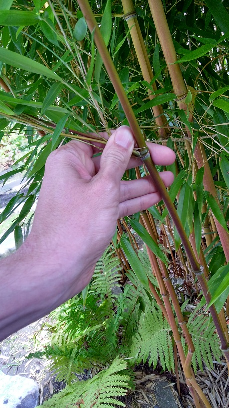 Ik snoei het onderste 1/4 tot 1/3 deel van de bamboe kaal, dat vind ik het natuurlijkst over komen.