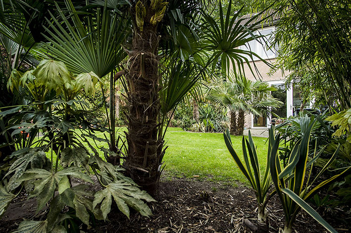 Leuk dat je het vraagt Judith, ik zal (als de regen ophoudt) deze week wat nieuwe foto's maken. We hebben de laatste weken flink in de tuin gewerkt. Bijna alle bamboepollen zijn flink kleiner gemaakt, de musa basjoo is overleden, de dicksonia antartica heeft al zijn oude blad verloren, maar loopt weer goed uit, de grootste Yucca is gespleten in zijn koppen en het is denk ik einde oefening met deze reus. De eucalyptus heeft een enorme snoeibeurt gehad, kortom er is wat meer lucht en licht in de tuin gekomen, wat wel nodig was zeg maar, haha.