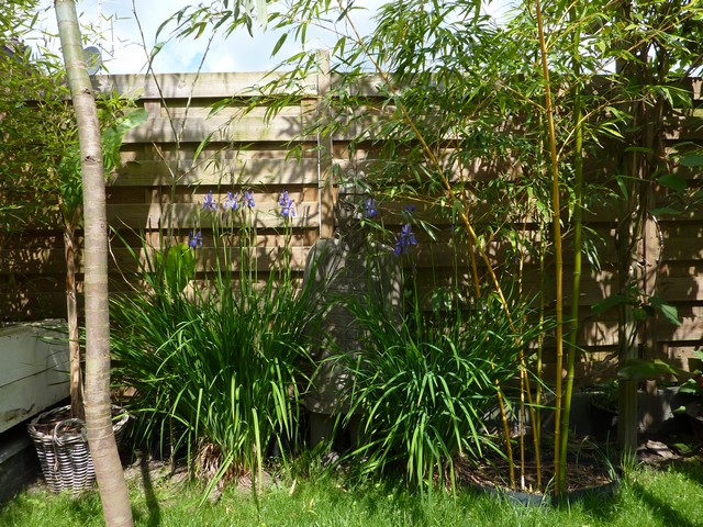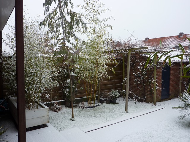zo de winter 2016/2017 hebben we gehad. Nu aantal foto's lente 2017. paar aanpassingen gedaan. fargesia bamboo die rechts vooraan stond . verdeeld in potten en en groot gedeelte in de voortuin gezet. Wilde eerst in zijn geheeld eruit haal maar naar een uur strijden maar de bijl erbij gepakt
