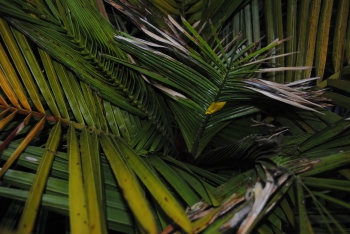 Ik heb er vandaag eens de schaar ingezet. De groei is nog steeds niet je dat. Nu is de situatie als volgt: de binnenste speren zijn open en groeien, ze zijn wel merkelijk kleiner dan de oude bladeren. De bladeren die er half uitsteken willen niet groeien en worden stilaan geel hoewel ze geeneens volgroeid zijn. Wat heb ik dus gedaan: de onderste bladeren zagen er echt slordig uit doordat die nog op de grond "lagen" Ze waren wel nog groenachtig. Ik heb de onderste bladeren de palm rond allemaal weg gedaan. Ziet er veel netter uit nu. Ik hoop ook dat dat zo wat energie gespaard is. Over de prognoses: leeft nog want de binnenste speren groeien en zitten muurvast. De halve bladeren gaan volgens mij vroegtijdig bruin worden. Ik hoop dat dat geen misvormingen oplevert. De mini bladeren die de nieuwe speren zijn is volgens mij verborgen beschadiging van toen hij in pot buiten op de koer van de verkoper stond met zwarte vorst. Moet er gewoon uitgroeien denk ik.
