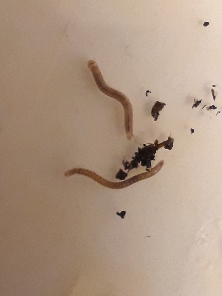 Bedankt voor het meedenken, het zijn alleen ook geen Engerlingen. Die zijn veel groter dan deze beestjes. Ik heb geprobeerd een wat betere foto te maken van de beestjes alleen. Ze zijn dus vrij lang, ongeveer 1 a 1.5 cm maar wel heel dun..